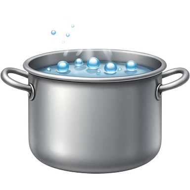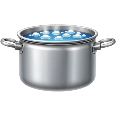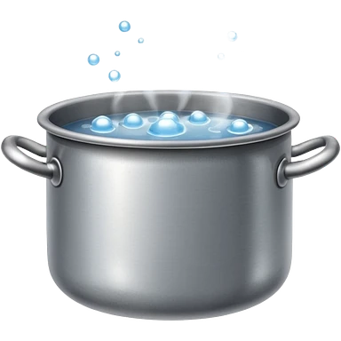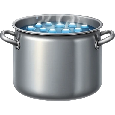 small metal pot filled with boiling water on a stove, visible hot steam and rising bubbles, realistic heat effect, shiny pot surface, bright lighting, clean white background emoji
