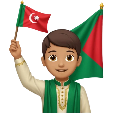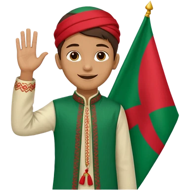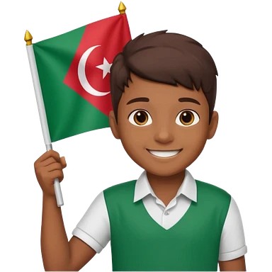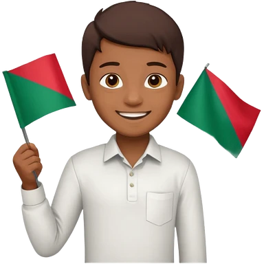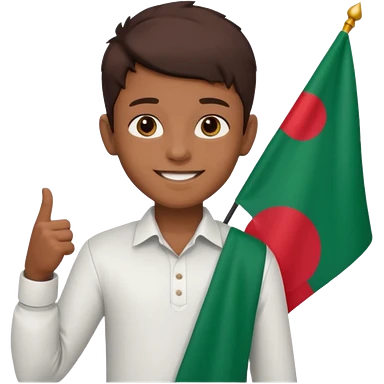 A boy stands with a Bangladeshi flag and greets on the occasion of December 16th. emoji