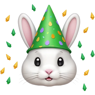 Rabbit in Green Party Hat – white bunny with cone party hat and confetti. emoji