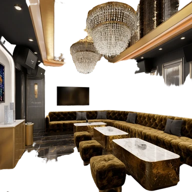 Club decor exudes extravagance, with state-of- the- art lighting and sound systems and meticulous attention to furnishings and fixtures emoji
