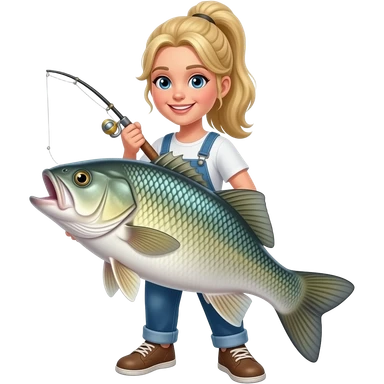 a blonde girl hook setting a big fish emoji