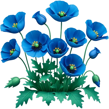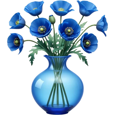 Still life realistic 3D rendering, beautiful and bright blue poppies emoji