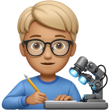 A 3D emoji with a Memoji style that the depicts a person who is learning to become a mechatronic as his highchool extended profile. He is a young boy in a highschool age. emoji
