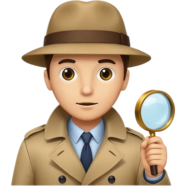 detective in blue suit and blue hat brown hair white skin with big mangifier in his hand looking trough the magifier emoji