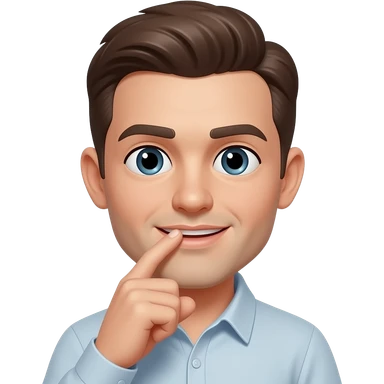 Cara feliz con un dedo en la boca emoji