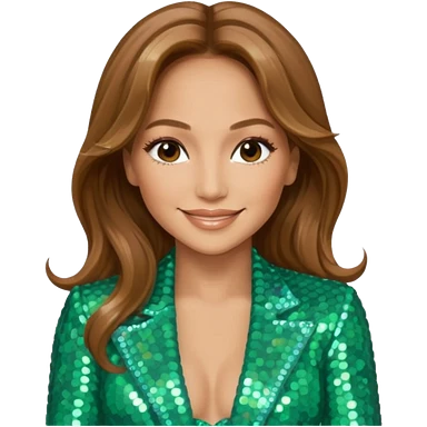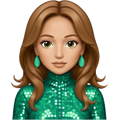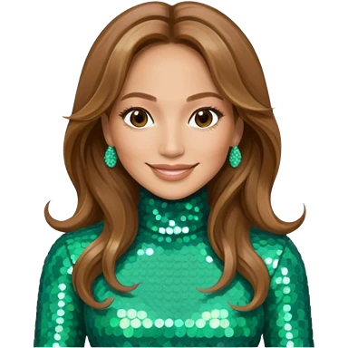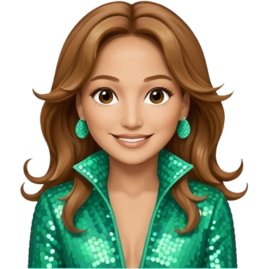 Jennifer Lopez with long light brown hair, seafoam green sequin outfit emoji