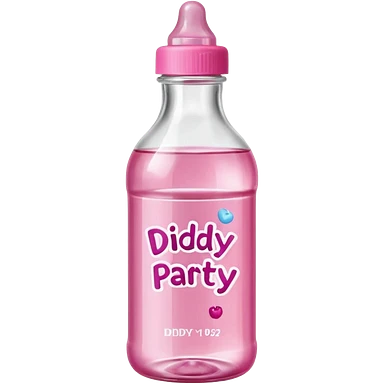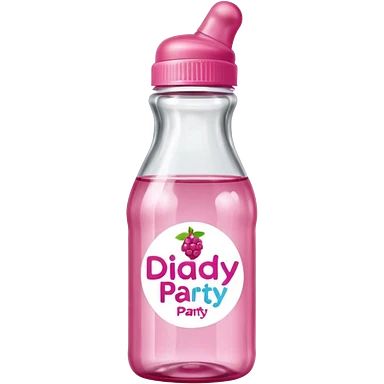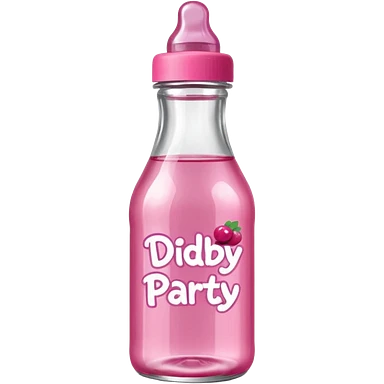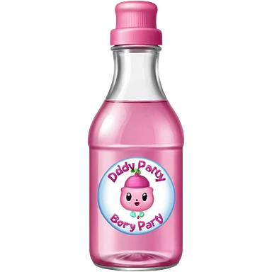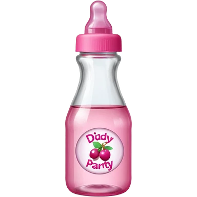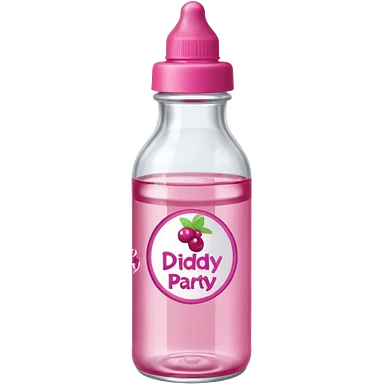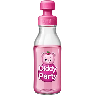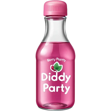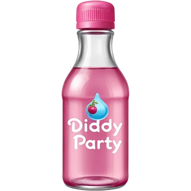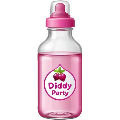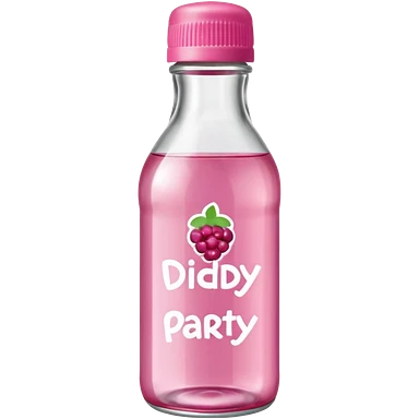 realistic baby oil style bottle pink cap pink logo clear bottle with berry logo with diddy party written and a berry on top bottle emoji