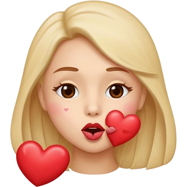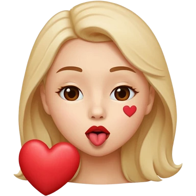 A cute circular blowing a smooch kiss with heart and little bite on the lower lip emoji