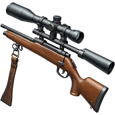deer hunting bolt action rifle with a scope mounted to the top of the gun barrel and a sling attached properly to the underside of the gun emoji