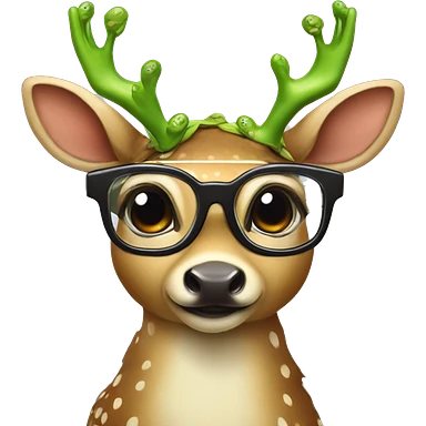 deer wearing slippers with glass glasses and lashes with a frog en their back emoji