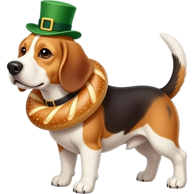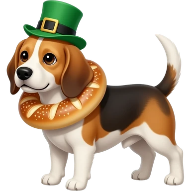 Beagle dressed for St Patrick’s day with bagel around its neck emoji