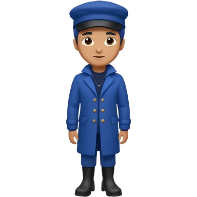 A Man Wearing Blue Cap With The Indigo Coat And Suit An black Boots emoji