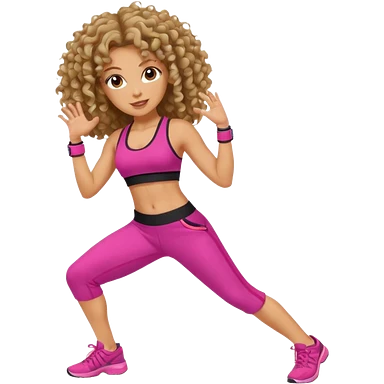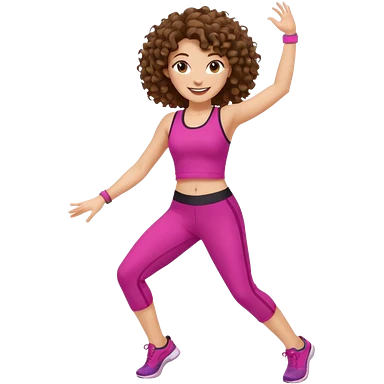 kıvırcık kahverengi saçlı ,beyaz tenli zumba hocası dans ediyor emoji