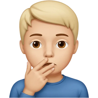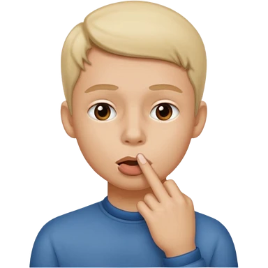face of a white little kid that doing shush with finger emoji
