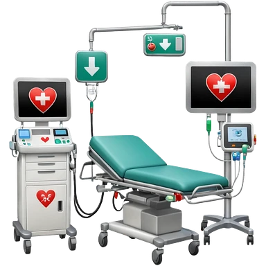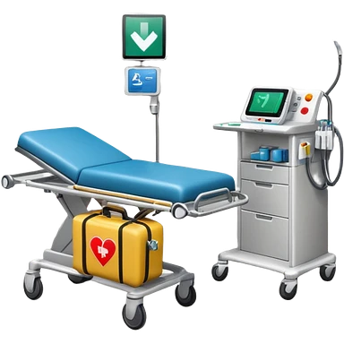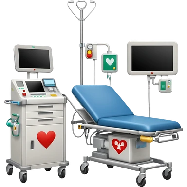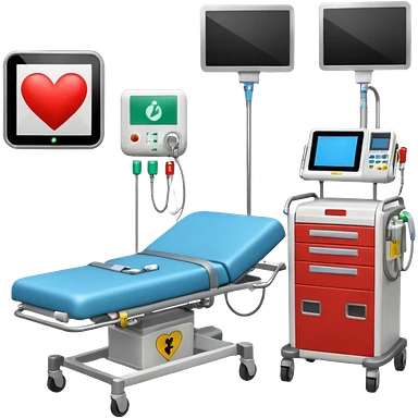 An emergency room corner with defibrillator, monitors, and crash cart. emoji