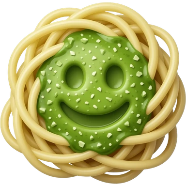 a delicious pesto pasta with a face emoji