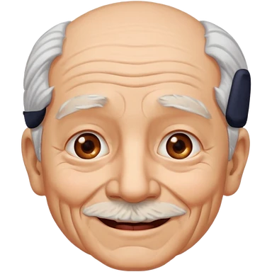 Abuelo hombre, ojos cafés, muchas arrugas, aspecto feliz, el pelo debe ser blanco no morado. emoji