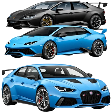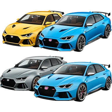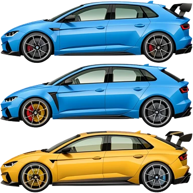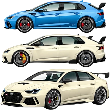 three cars lineup front profile forming a semi circle with a lamboghini svj an bmw m140i and a audi rs6 emoji