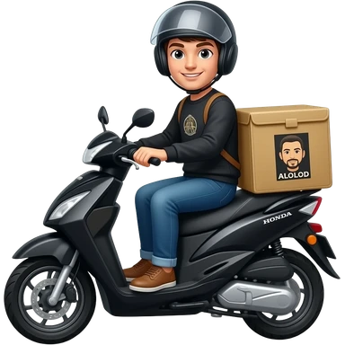 Delivery rider in black motorcycle with ALOLOD logo emoji | AI Emoji Generator