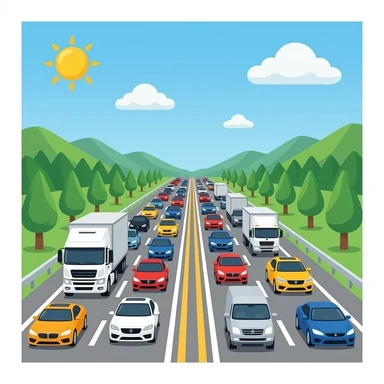Highway full of cars trucks and vans luxury cars and delivery robots emoji