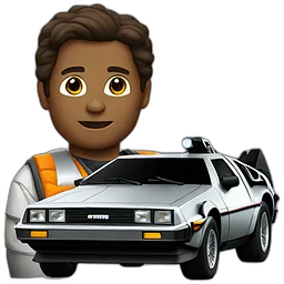 DeLorean from the movie back to the future traveling back in time to 1985 emoji