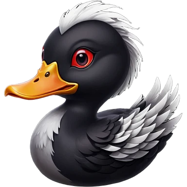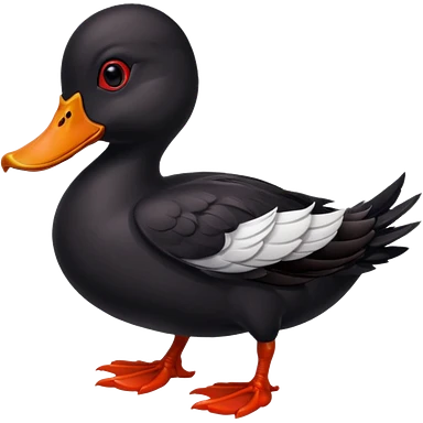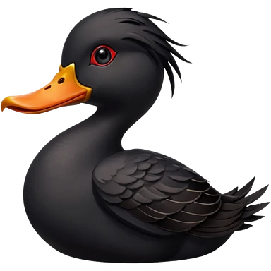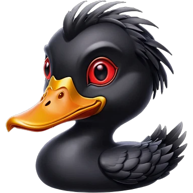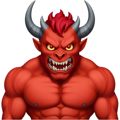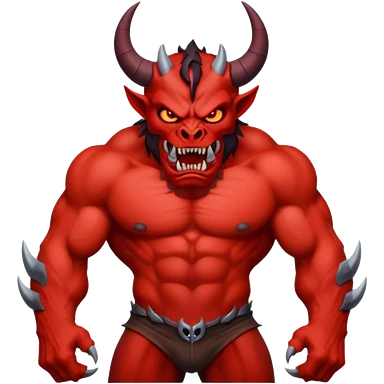 demon girl, skin red , black long hair, small horns, bat wing, black open-back dress, bold black outlines, red+black palette emoji