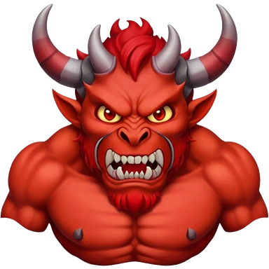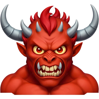 demon girl, skin red , black long hair, small horns, bat wing, black open-back dress, bold black outlines emoji