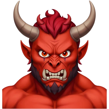 Demon cartoon emoji character, head and shoulders included (chest-up crop), centered face, confident and edgy expression, sharp eyes, subtle smirk, small curved horns, clean stylized face, not cute, not scary, modern emoji-style illustration, bold colors, smooth shading, high readabilityemoji