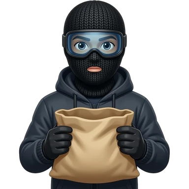Somebody with a full black ski mask with a sack open emoji