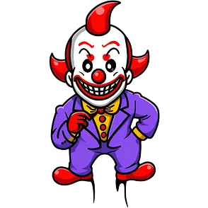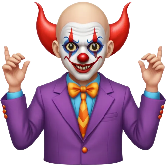 demonic clown wearing a leisure suit, bald with different horn styles emoji | AI Emoji Generator