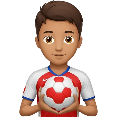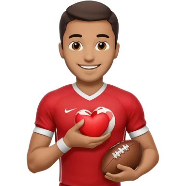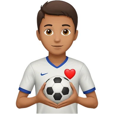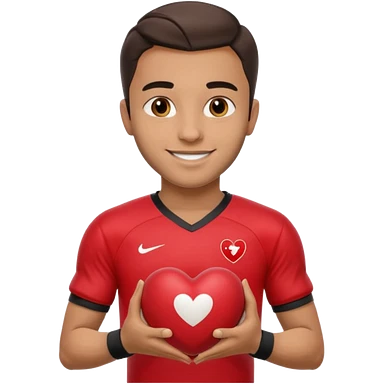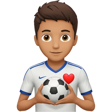 عکس یک فوتبالیست با یک توپ فوتبال به دست که توپ فوتبال دستش مثل قلبه emoji