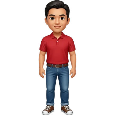 Filipino man red polo shirt and denim jeans with brown sneakers shoes emoji