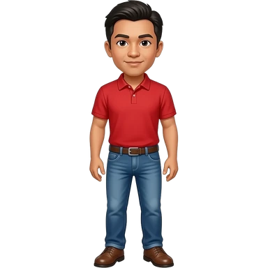 Filipino man red polo shirt and denim jeans with brown shoes emoji