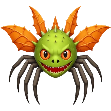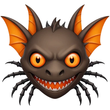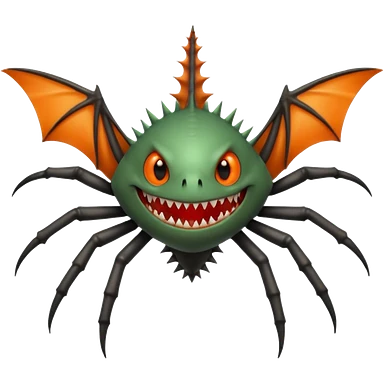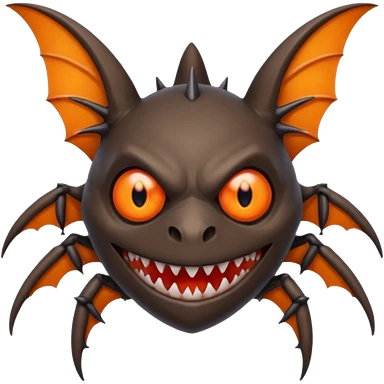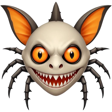 A bat with acid all in his body and his eyes replaced with shark teeth and his hand in his back ( four hand) and his spines will be very spiky and his leg will like a spider and last his eyes or 4 eyes will be in his hands and the colour of the eyes will orange and black emoji
