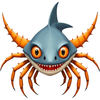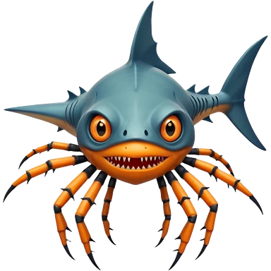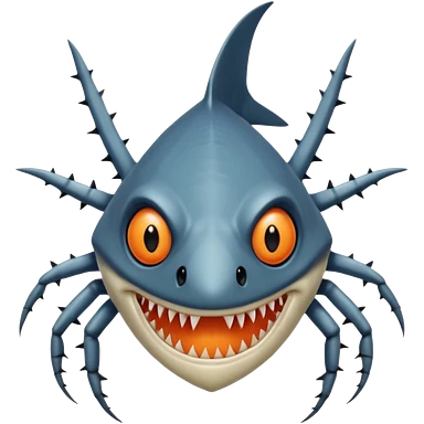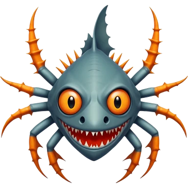 A angangular fish with acid all in his body and his eyes replaced with shark teeth and his hand in his back ( four hand) and his spines will be very spiky and his leg will like a spider and last his eyes or 4 eyes will be in his hands and the colour of the eyes will orange and black emoji