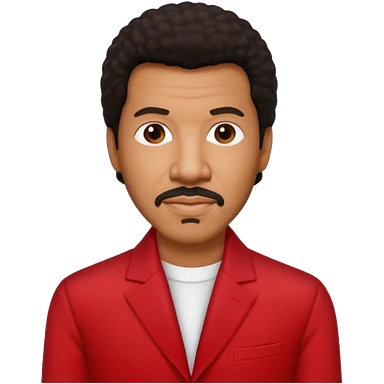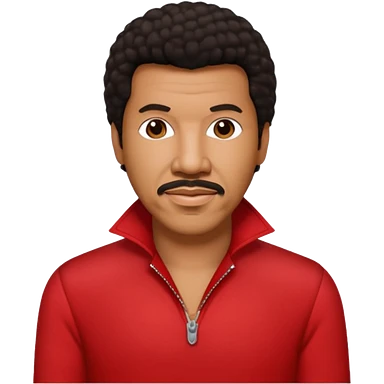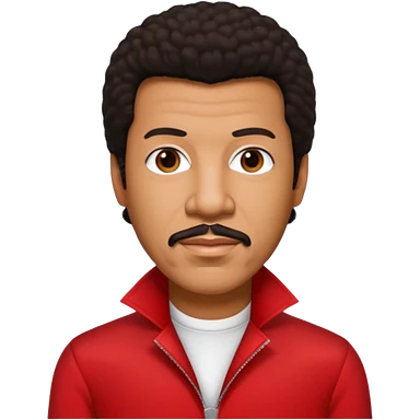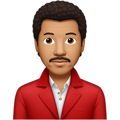 Lionel Richie with dark brown hair, red outfit emoji