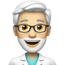 A dentist in a white coat smiles widely with snow-white teeth emoji