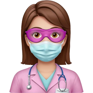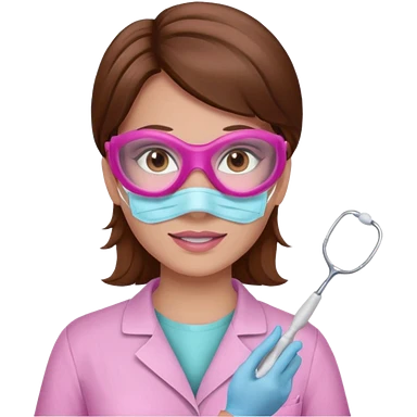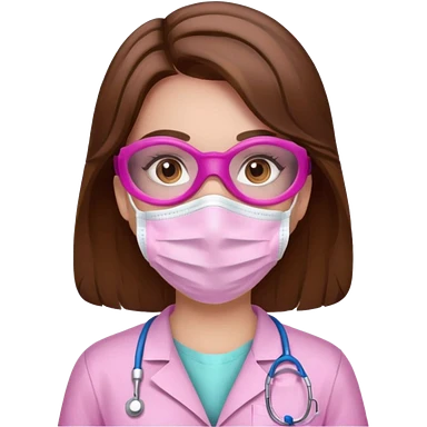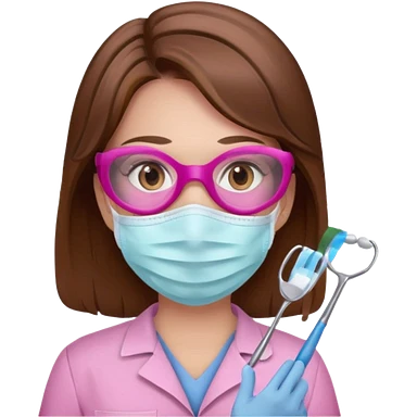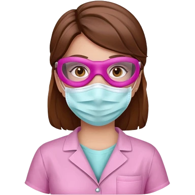 Dentista mujer con mascarilla rosada, cabello marron, piel blanca, camisa rosada, ojos marrones, sin lentes emoji | AI Emoji Generator