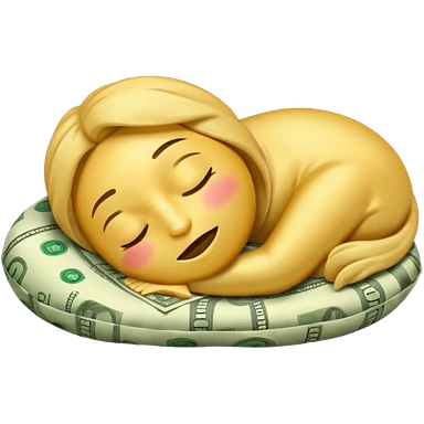 emoji sleeping on a pillow of money emoji