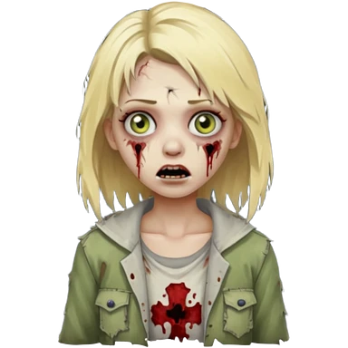 zombie girl with curly hair n brown eyes, dark and long hair 3a with wavy scalp, just a tshirt emoji