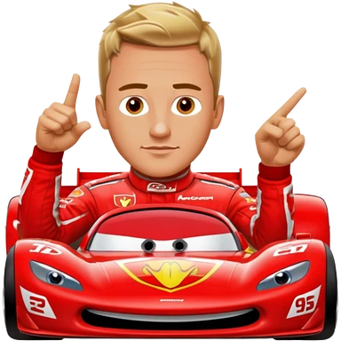 Ralf Schumacher pointing at Lightning McQueen emoji