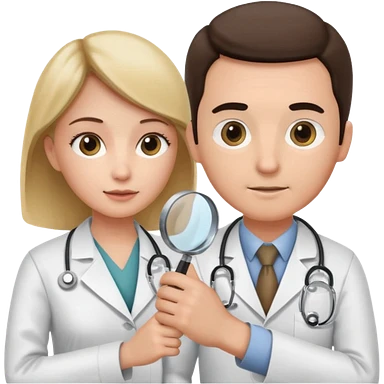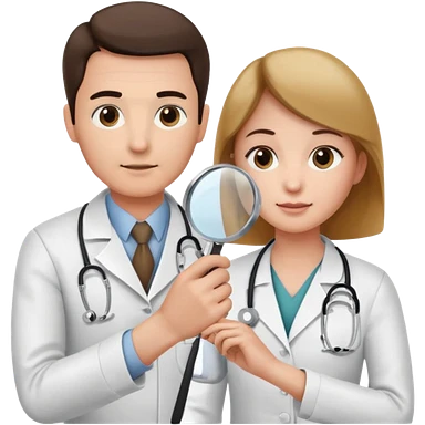 medico olhando a pele do braço de um paciente com uma lupa emoji
