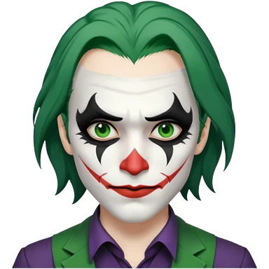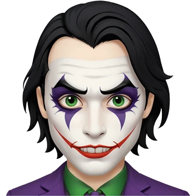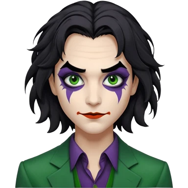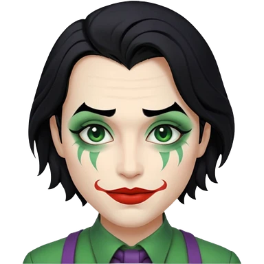 Faça uma pessoa com cabelo preto e pouco grande com cara de coringa emoji