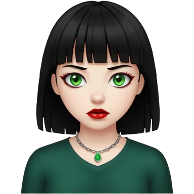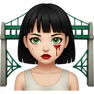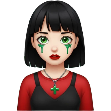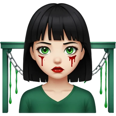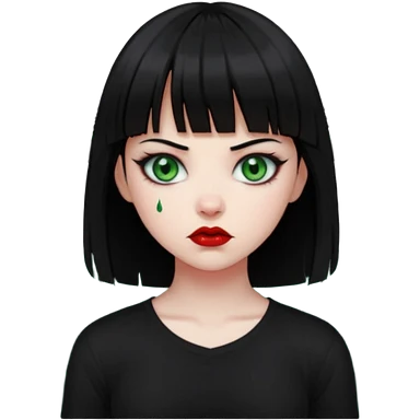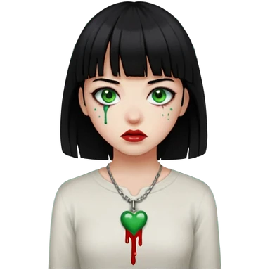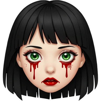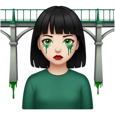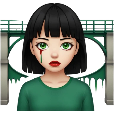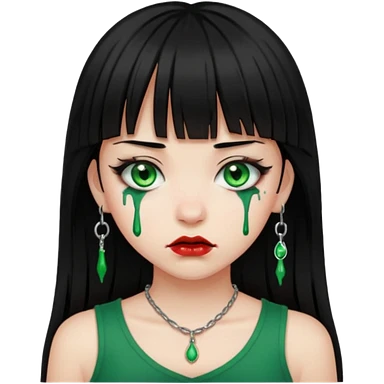 Guria com cabelo preto franjinha sangrando olhos verdes fundo preto e um piercing bridgepiercing emoji