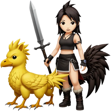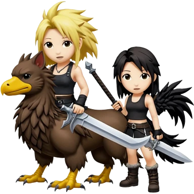 Cloud & Tifa FF7 character emoji - with fenrir blade & black chocobo emoji