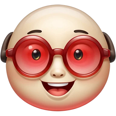 A single chubby crystal gemstone character wearing cute round glasses, chunky and irregular with faceted sides (not egg-shaped), [red] gradient, big glossy eyes behind the glasses and a wide happy smile, 3D cartoon game icon style, high detail, soft lighting, centered on a plain dark background emoji