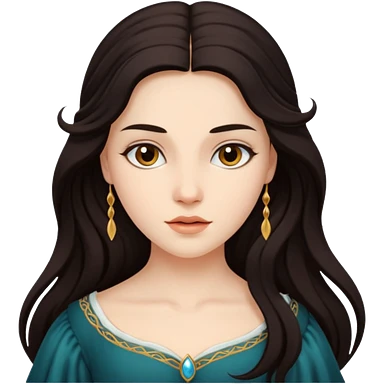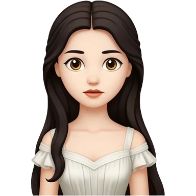 Desdemona from Otello with white skin, green eyes, long blonde hair, white outfit emoji | AI Emoji Generator