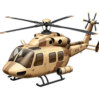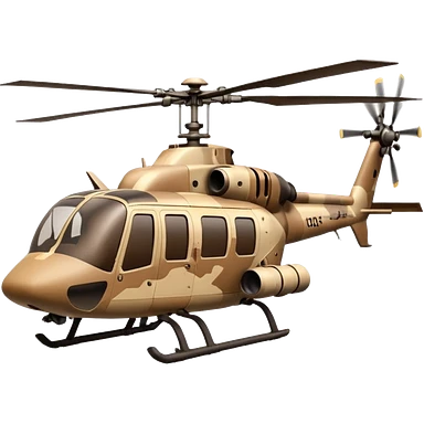 Desert camo helicopter with cannon emoji | AI Emoji Generator
