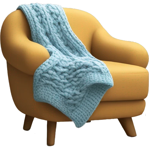 Design an inviting emoji of a chunky knit blanket folded on a comfy chair, with a cup of coffee nearby, evoking a cozy home setting. emoji | AI Emoji Generator