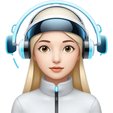 An old-fashioned royal portrait but with a sci-fi twist - the beautiful female is wearing high-tech headgear with glowing screens floating around them. emoji